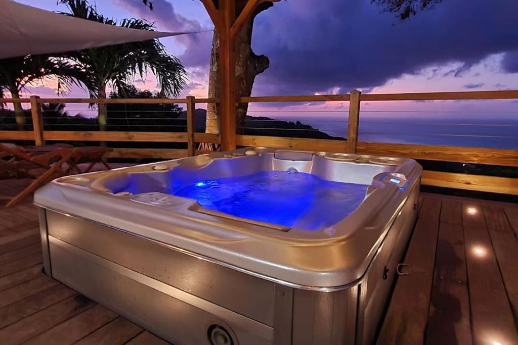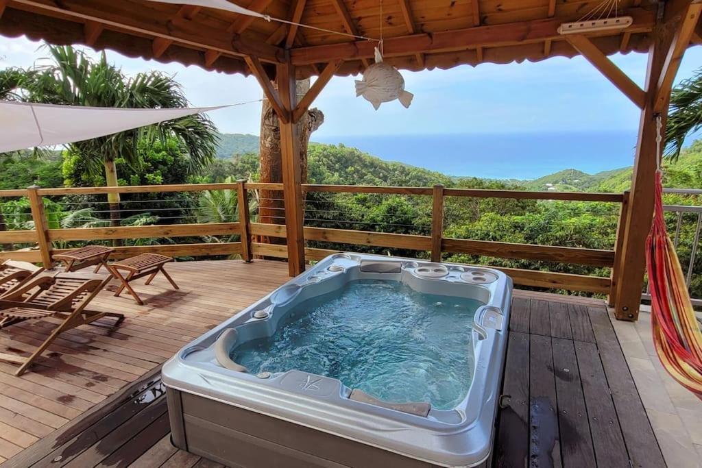"A perle de vue" est un joli cocon secret. La magnifique plage de la Perle y fait face à perte de vue. Par temps clair, tu y apercevras également droit devant l’île de Montserrat. Sur ta gauche, une autre vue mer donne sur la plage de Grande Anse. Les montagnes et forêts sont omniprésentes aux avants postes. Tu en profiteras depuis la piscine au sel de 15m2 ou du spa canadien 3 places. La douche extérieure, entre spa et piscine, vient renforcer l’expérience de lâcher prise.
