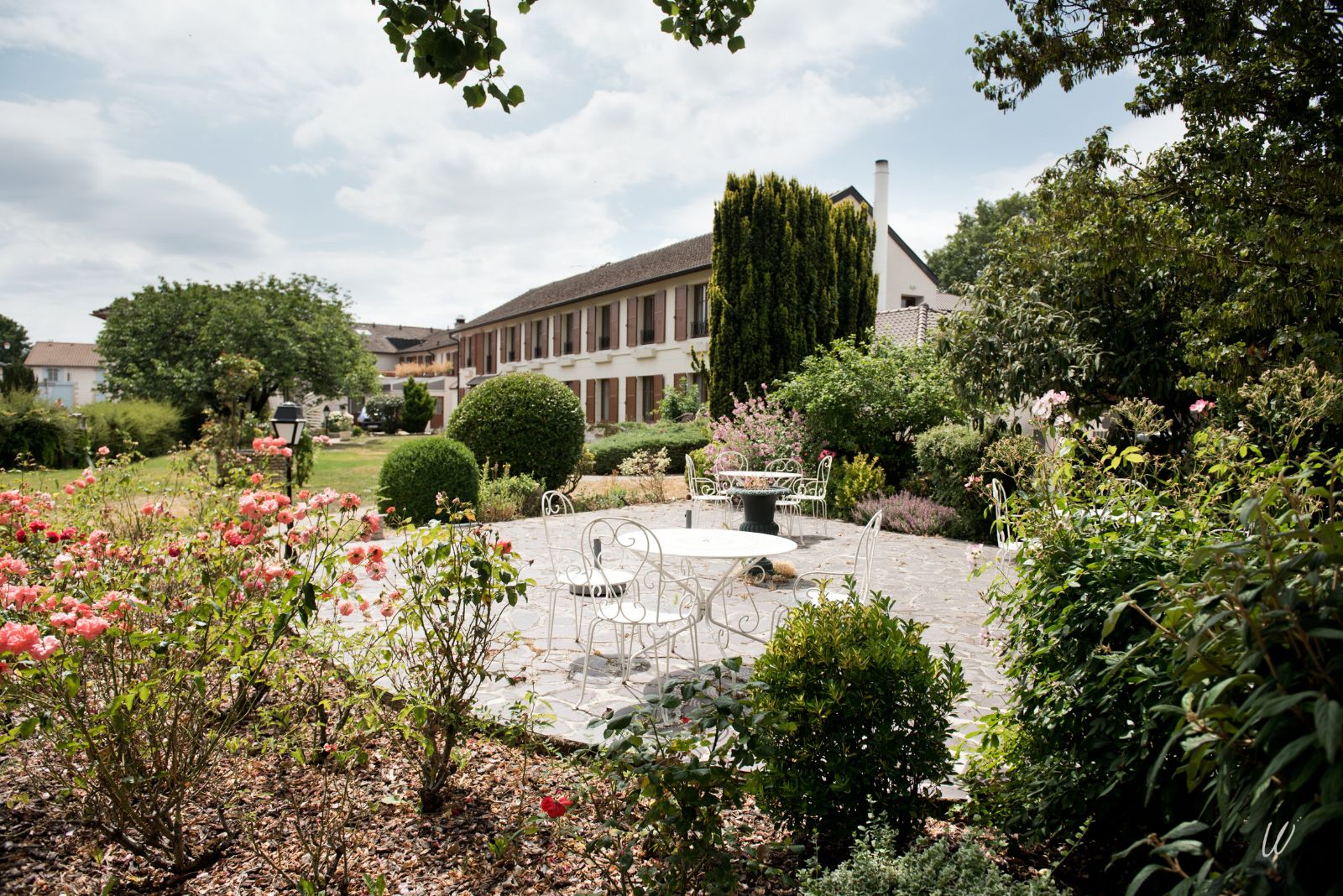 Le vaste jardin, la terrasse ensoleillée et les salons élégants complètent ce lieu où chaque détail célèbre l’art de recevoir.