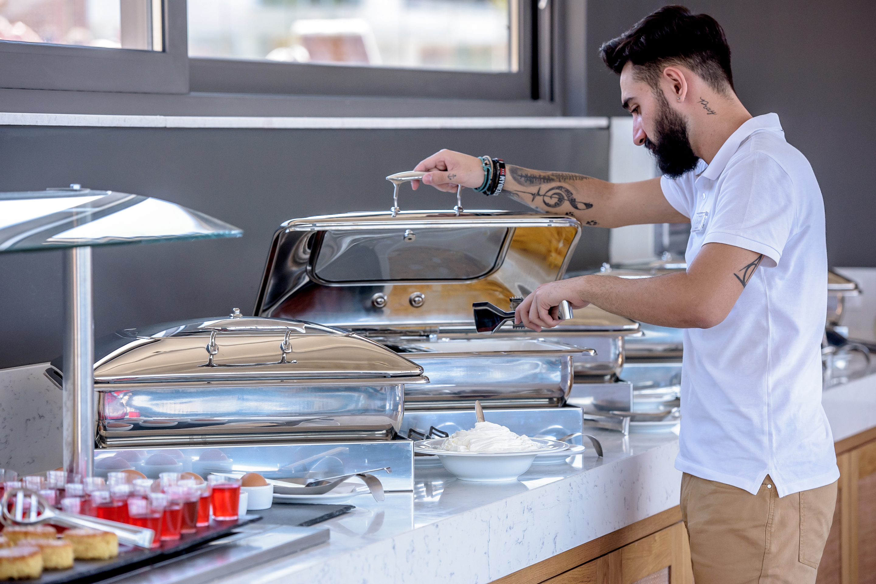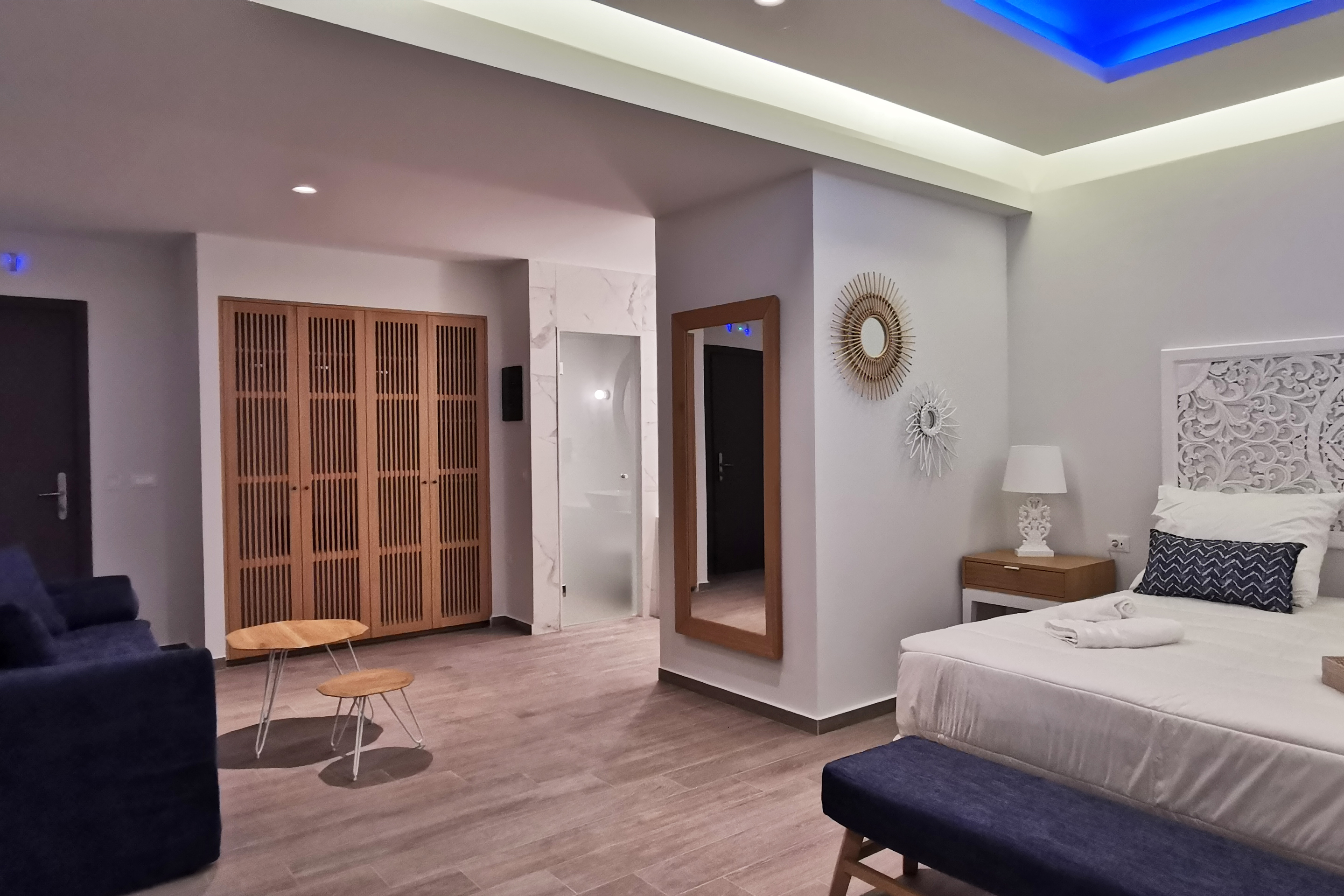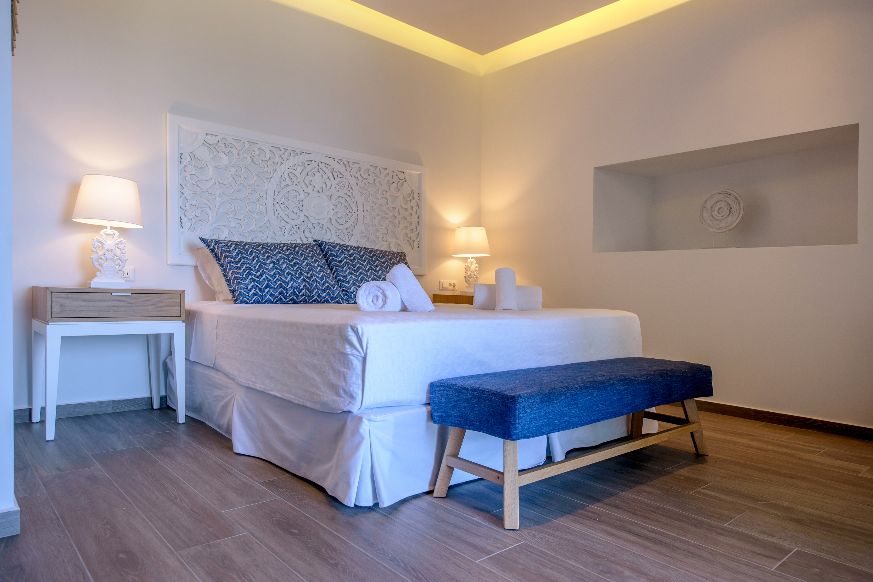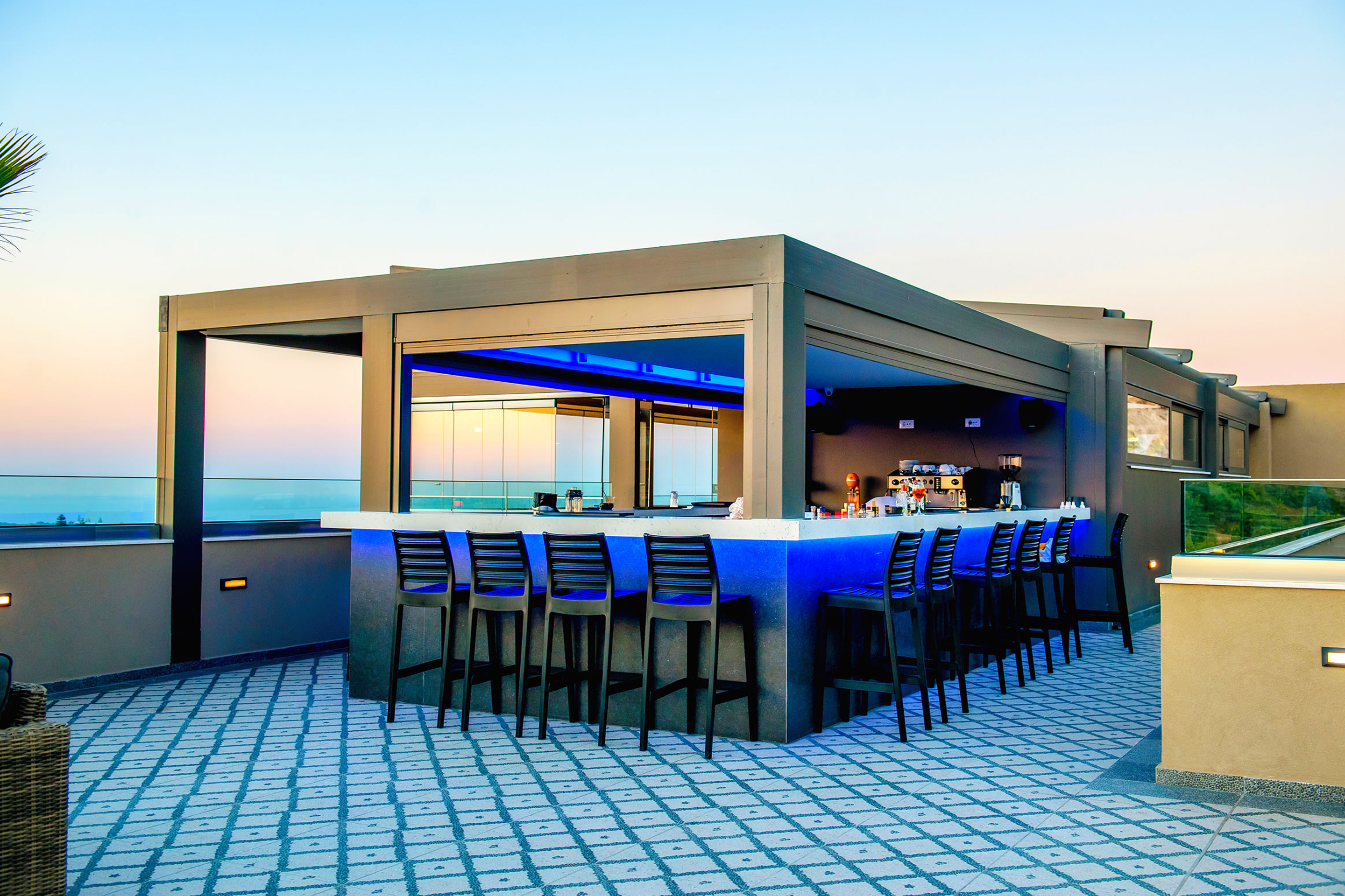 Inspiré par les teintes orangées, ocres et bleues du palais de Knossos et de la culture minoenne, l’hôtel est situé dans la vieille ville d’Hersonissos, à deux pas de la place principale et à quelques minutes à pied de la plage de Sarantari, la plage nudiste LGBTQIA+ la plus emblématique de l’île.
