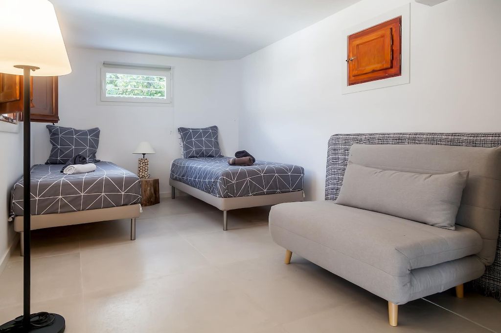 En descendant d'un étage de plus, vous trouverez la terrasse confortable du salon pour vos boissons avant le dîner ou pour regarder le coucher du soleil en sirotant votre cocktail après le dîner. Et puis bien sûr, nous avons la magnifique grande terrasse autour de la piscine pour profiter du soleil et de la piscine à son maximum. Vous pourrez prendre vos déjeuners ou dîners confortablement tout en regardant les magnifiques couchers de soleil !