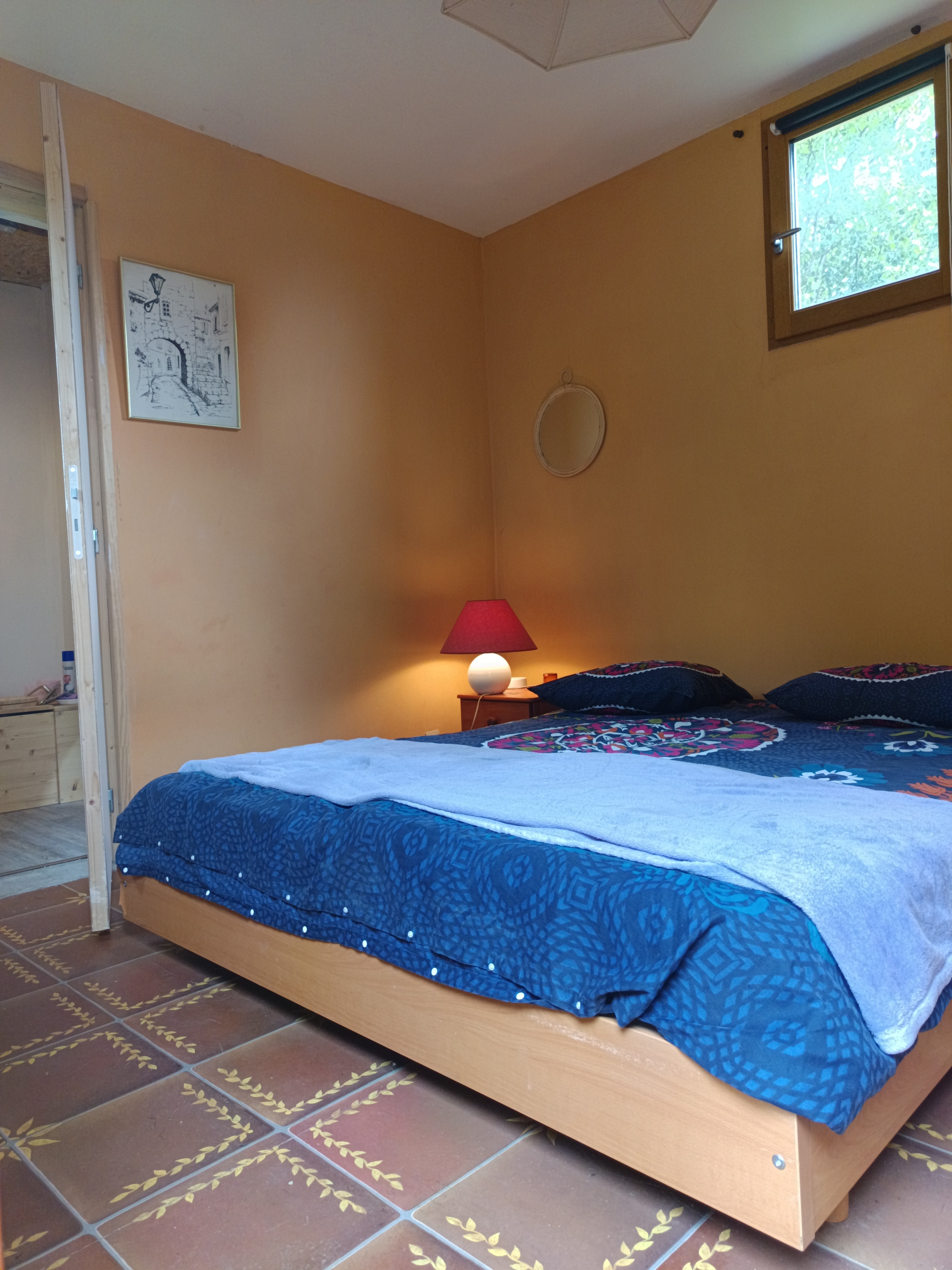 Je propose 3 chambres : la plus grande au rez-de-chaussée, une dans la dépendance du jardin avec lavabo et toilettes sèches, et une à l’étage en enfilade avec la mienne (je dois la traverser), toutes avec un lit 160 ou 180 . Le reste de la maison, dont l’unique salle-de-bains, est partagé avec moi, et l’accès à toutes les pièces est libre (même ma chambre)