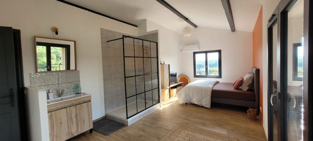 Nos chambres sont toutes deux équipées d'un lit 160*190, d'une douche privative, d'une télévision et d'une cafetière. Elles bénéficient aussi d'une climatisation réversible pour ajouter à votre confort. Les WC sont commnus.