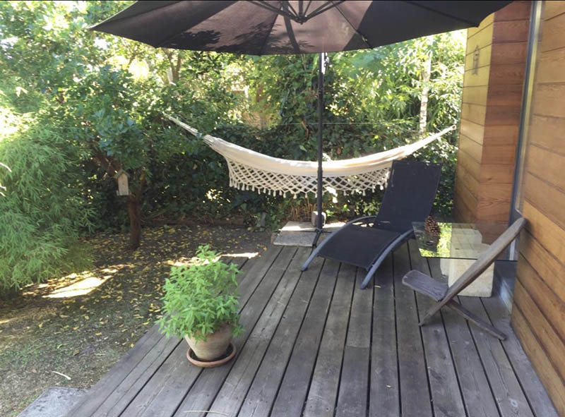 Gîte, Chambre d'hôte dans un grand studio indépendant de 27m2 dans un jardin zen, calme et ensoleillé. Situé à Merignac (quartier Bordeaux St Augustin / Arlac ) vous pourrez entrer et sortir à votre gré, Le Clos Bamboo est un studio ( tout neuf ) composé d'une grande pièce à vivre (27 m²) avec d'un coté la chambre (grand lit double de 160cm) de l'autre coté un coin repas et une kitchenette équipée pour préparer un petit "en cas" si nécessaire :
