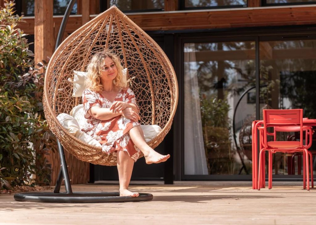Alliant le bois, le métal et la laine, la décoration des gîtes est conviviale et authentique. Posez vos bagages dans un lieu de vie aux volumes généreux permettant toutes les possibilités de couchage selon le confort dont vous avez besoin. Douze gîtes écolodge spacieux, clairs, chaleureux, avec terrasse privative au milieu d'un parc arboré de 3 hectares... pour une connexion immédiate à la nature.