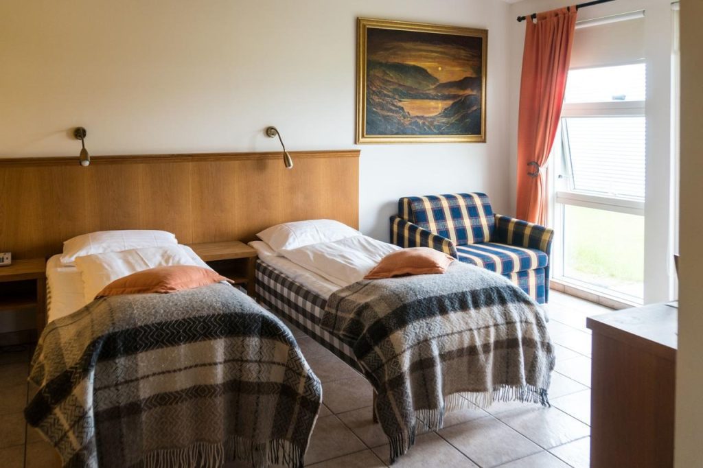 Pourvues de lits de qualité, toutes les chambres de l'Hótel Eldhestar possèdent aussi une télévision et un bureau. Leur décor est inspiré de la nature islandaise. Les chambres sont toutes équipées d‘une porte terrasse donnant accès aux champs environnants, idéale pour observer les aurores boréales pendant la saison.