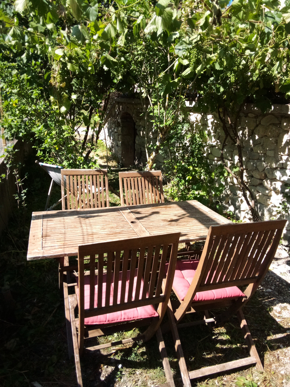 La chambre comprend un lit double et deux lits superposés, permettant d’accueillir jusqu’à 4 personnes. Vous avez accès à un balcon directement devant votre chambre, ainsi qu’à une partie du jardin, sous une pergola de vigne, qui vous est réservée.
