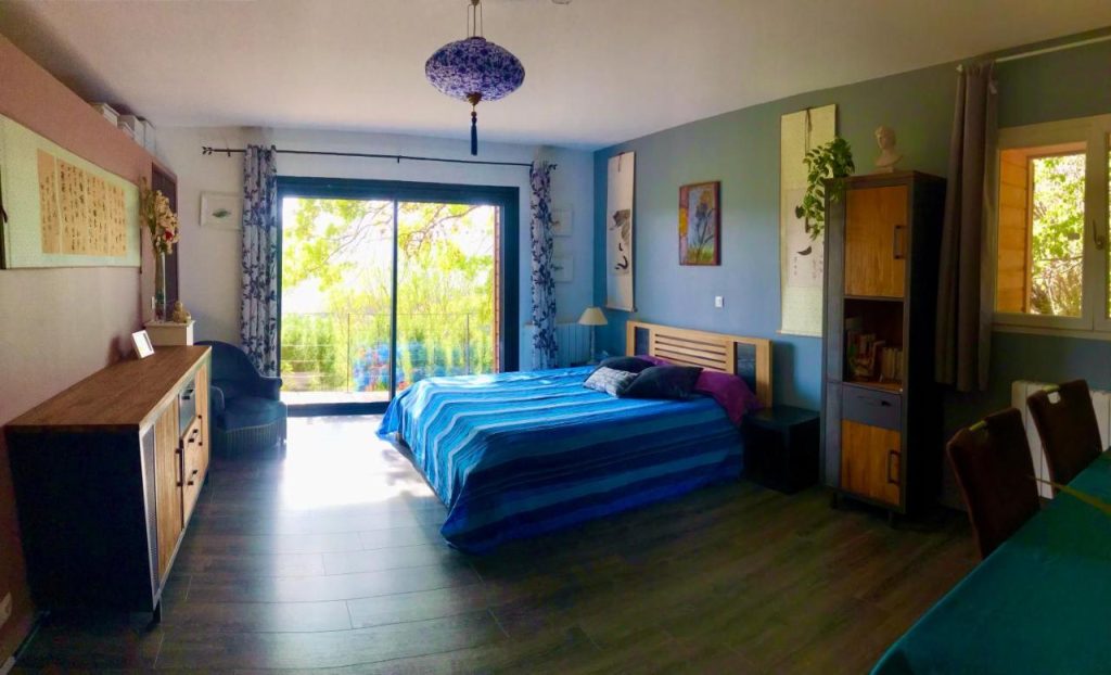La maison se compose d’un salon de 70 m2 et de deux grandes chambres orientées vers le sud. Chaque chambre possède un grand lit double confortable en 160 avec des grandes baies vitrées qui permettent d’avoir une belle vue dominante sur les montagnes. La maison peut recevoir au maximum 4 personnes mais n’accepte pas les animaux domestiques.