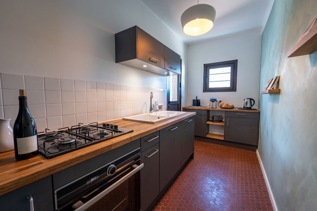 Maison de 48m2 avec une chambre (lit 160) à Banyuls-sur-Mer, cuisine équipée et deux terrasses vue mer dans une résidence sécurisée (portail et parking).
