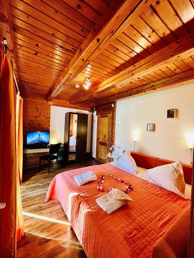 Nous offrons la possibilité d'hébergement dans 5 chambres spacieuses avec vue sur la montagne, avec salle de bain privée, douche, baignoire, sèche-cheveux et articles de toilette gratuits (2 chambres familiales et 3 chambres doubles). Chaque chambre dispose d'un abonnement Smart TV, Wi-Fi et Netflix inclus.