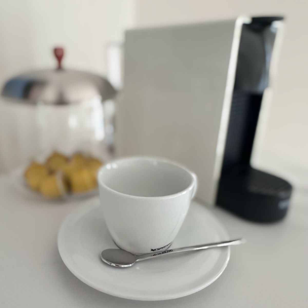 – Machine à café Nespresso avec capsules et eau fraîche