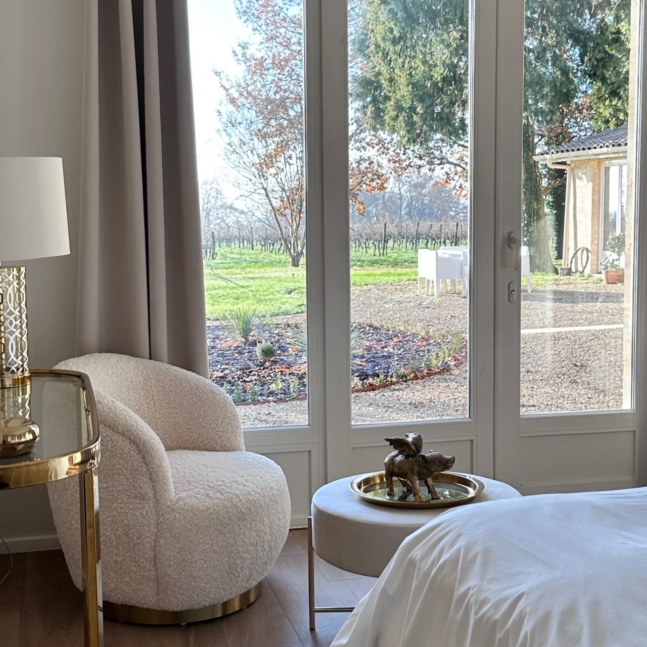 Dans la région viticole de Bordeaux, nous avons créé une maison d'hôtes boutique gay-friendly exclusive : le Refuge Luxe, qui dispose de trois chambres élégantes.